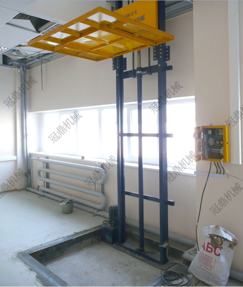 導(dǎo)軌式升降機是一種非剪叉式液壓升降機械設(shè)備。用于二三層工業(yè)廠房、倉庫、酒樓樓層間的貨物傳輸。最低高度在150-300mm,尤其適合不能開挖地坑的工作場所。并且無須上部吊點,形式多樣化(單柱,雙柱,四柱)。設(shè)備運行平穩(wěn),導(dǎo)軌式升降機的導(dǎo)軌一般為槽鋼、H鋼,方管焊接制成,操作簡單可靠,貨物傳輸經(jīng)濟便捷。