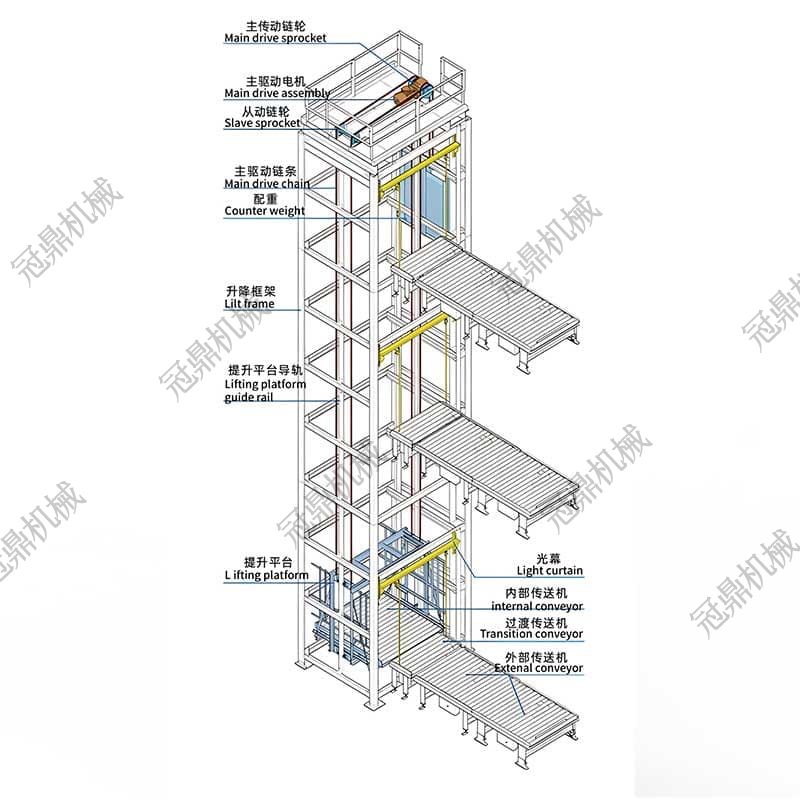 4. 安全保障: 配備多重安全保護(hù)裝置,如限位開關(guān)、防墜落系統(tǒng)和緊急停止按鈕,確保操作人員和設(shè)備的安全。